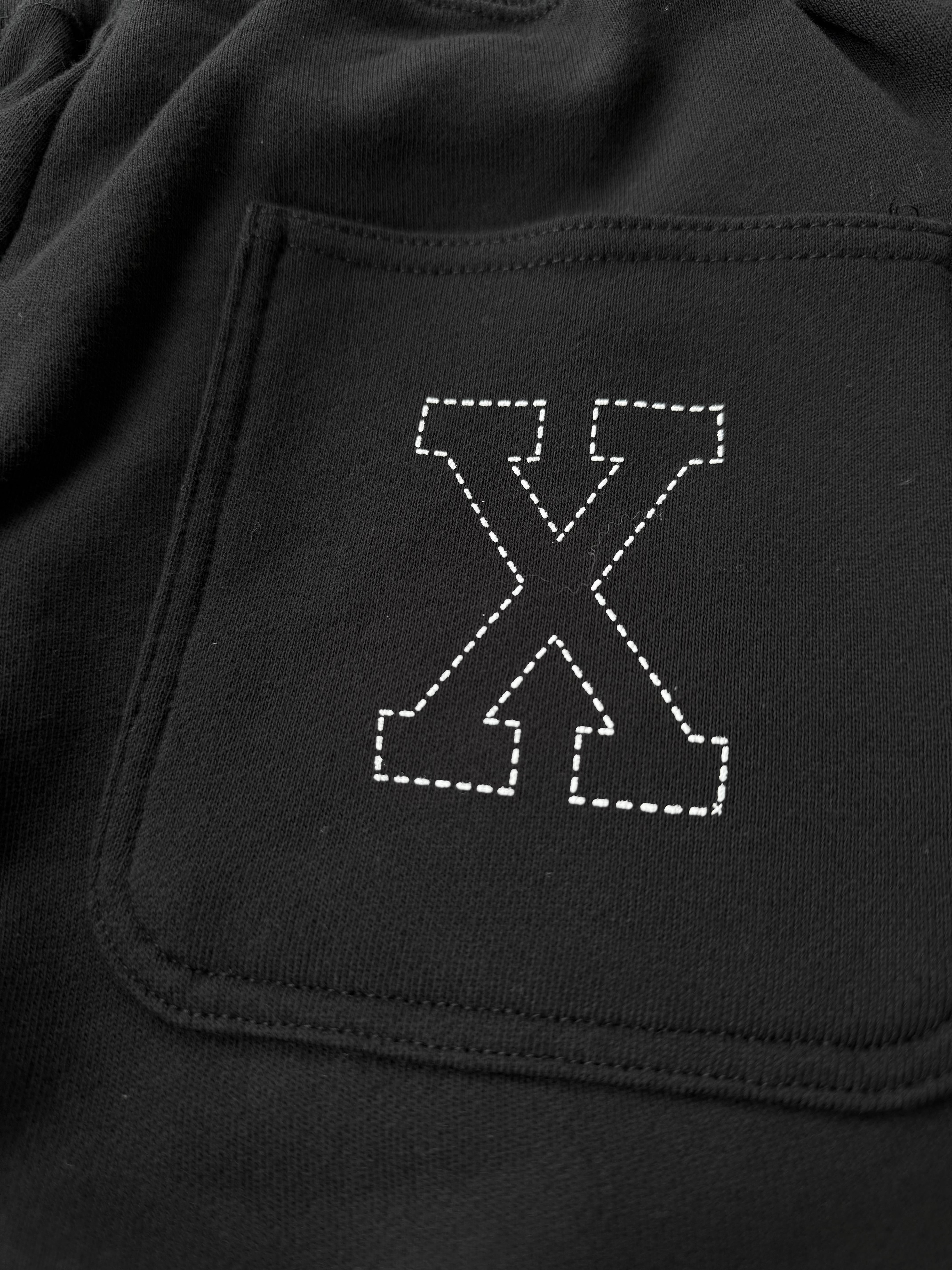 定番カレッジロゴをフロント膝部分に発泡プリント、バックポケット部分にステッチ風な発泡プリントされてます。
