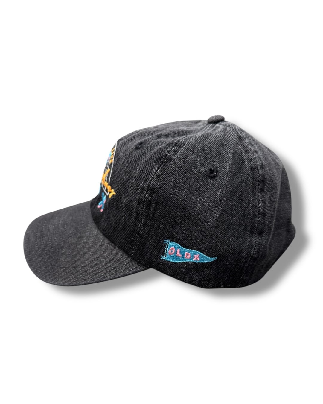 フロントにはOLDXの刺繍、サイドにフラッグロゴ刺繍が施されています。