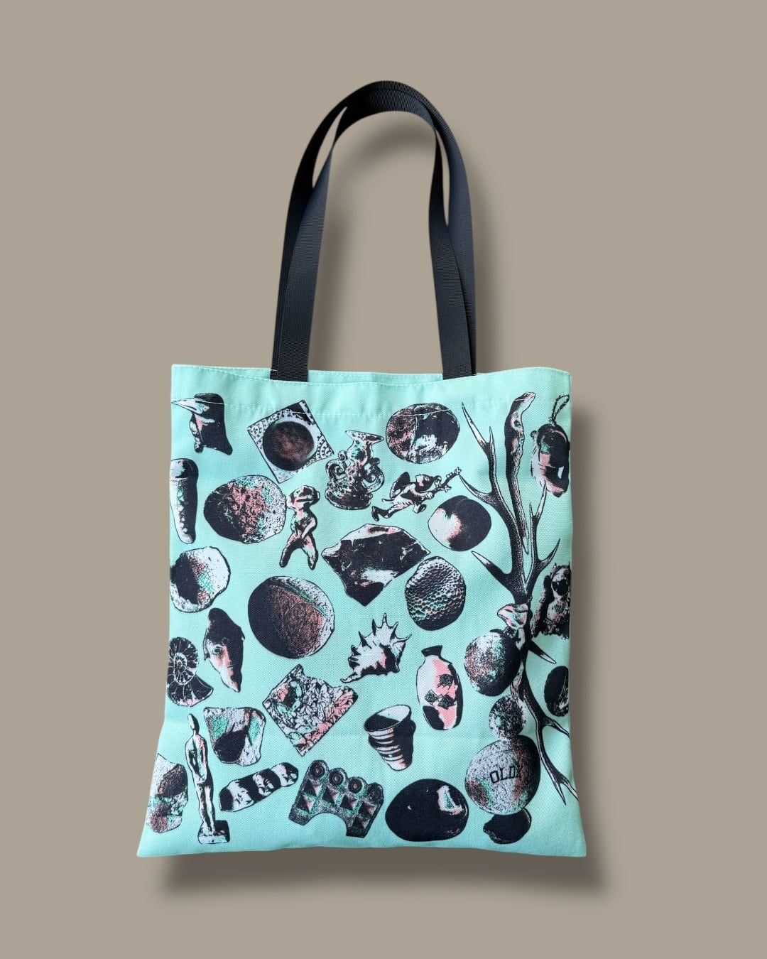舞台芸術をしながら様々な活動をしているアーティスト菊地もなみさんのコレクトされている古物をコラージュして作られた手軽なトートバッグになります。